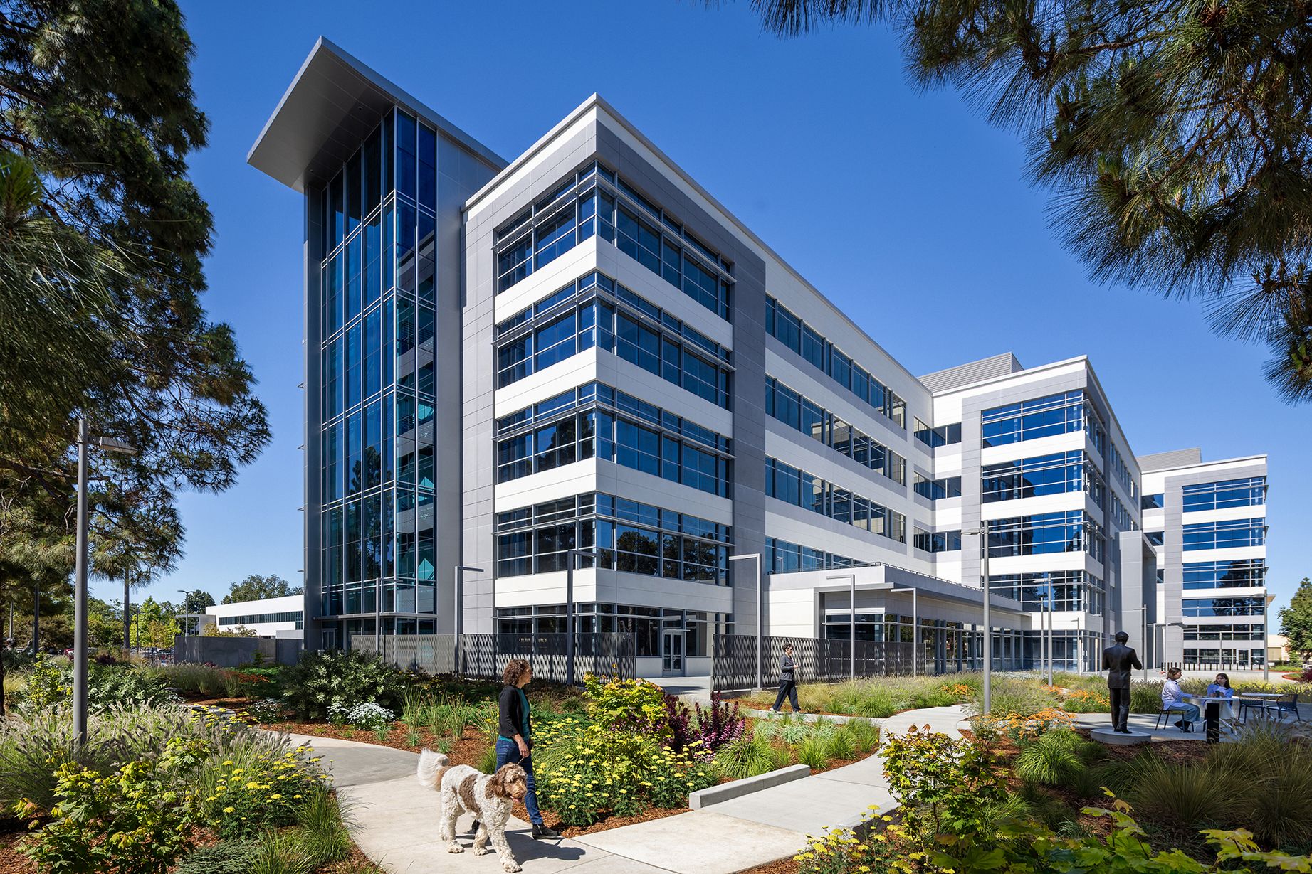 We created the site by strategically demolishing two bays of an existing logistics building at 1305 O’Brien. That right-sized 1305 for PacBio’s new headquarters and, simultaneously, opened up room for a new building fronting Adams Court.