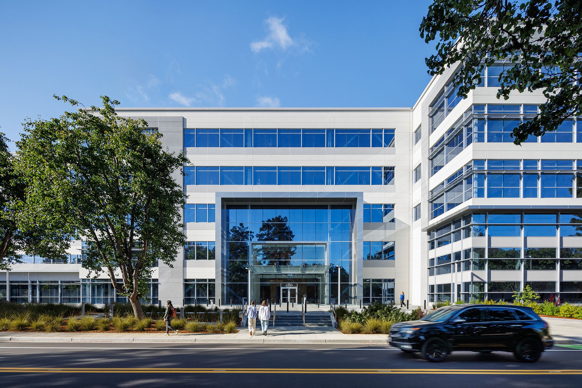 We created the site by strategically demolishing two bays of an existing logistics building at 1305 O’Brien. That right-sized 1305 for PacBio’s new headquarters and, simultaneously, opened up room for a new building fronting Adams Court.